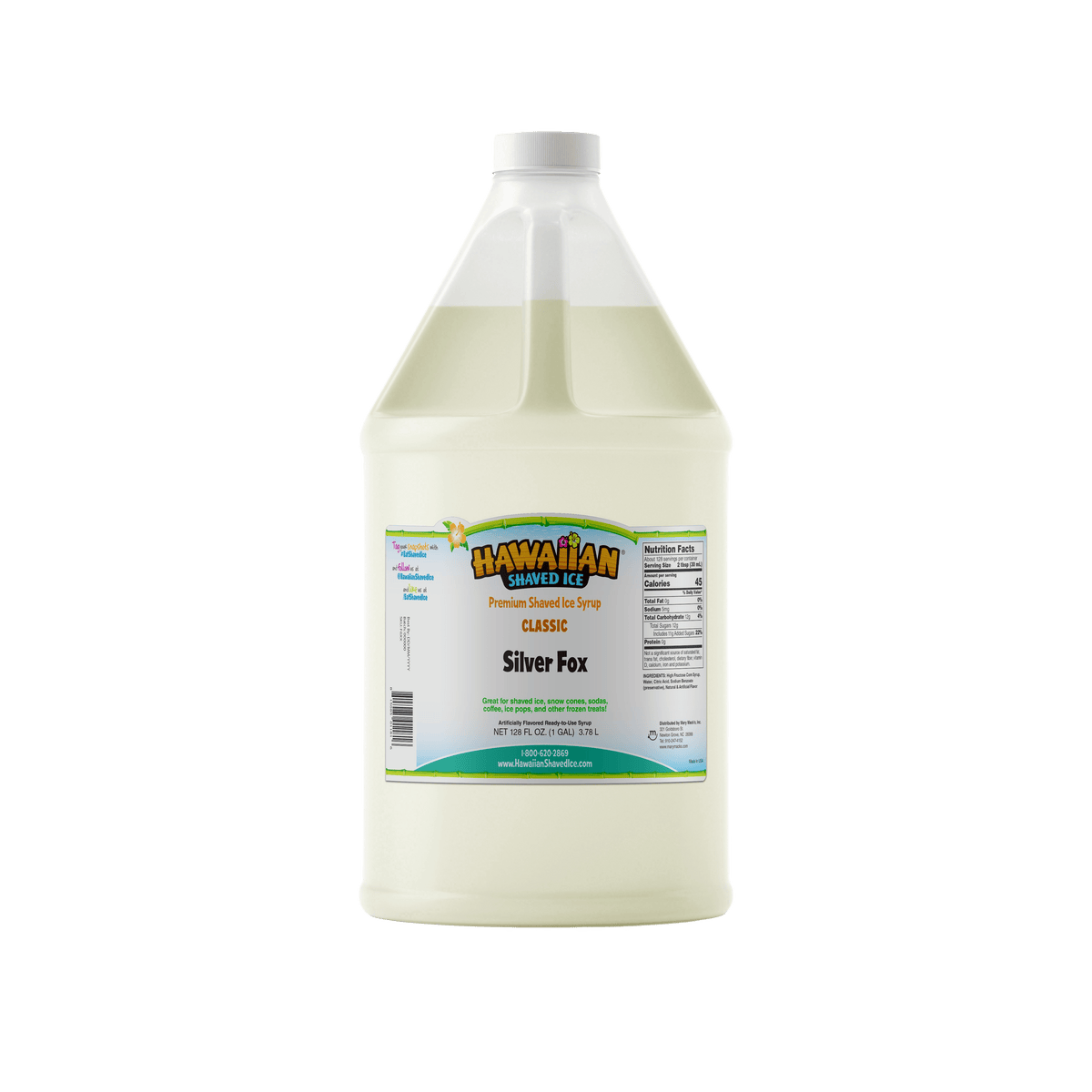 Buy a gallon of the silver fox snow cone syrup and enjoy the smooth taste while you relax with your loved ones. Nothing brings people together like delicious treats! For your convenience, this flavor is available in a quart size, as well as part of an assorted package, so you can combine other great Hawaiian Shaved Ice flavors! The fun doesn’t stop here!