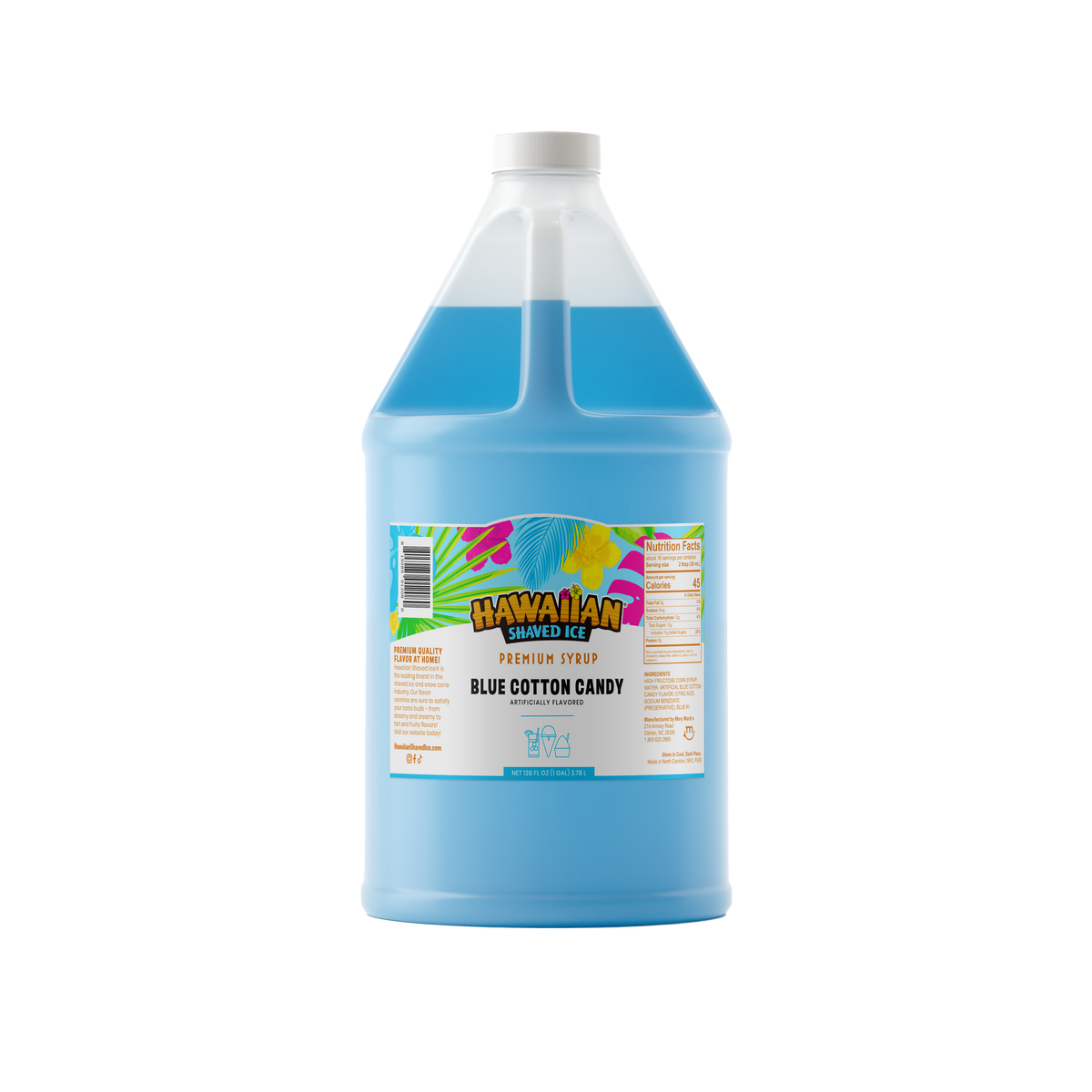 One taste of this blue cotton candy flavor will draw a crowd bigger than your local fair, so purchase a gallon of this yummy syrup today. Everyone can enjoy this county fair treat without having to leave your backyard! This flavor is also available in our quart size, or it can be combined in an assorted package with other delicious Hawaiian Shaved Ice flavors!