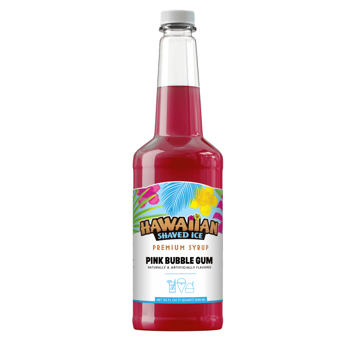 Take a trip down memory lane and get the best bubble gum snow cone syrup around. Pink bubble gum syrup from Hawaiian Shaved Ice is available in quart and gallon size and is the perfect choice for your next event or family gathering.