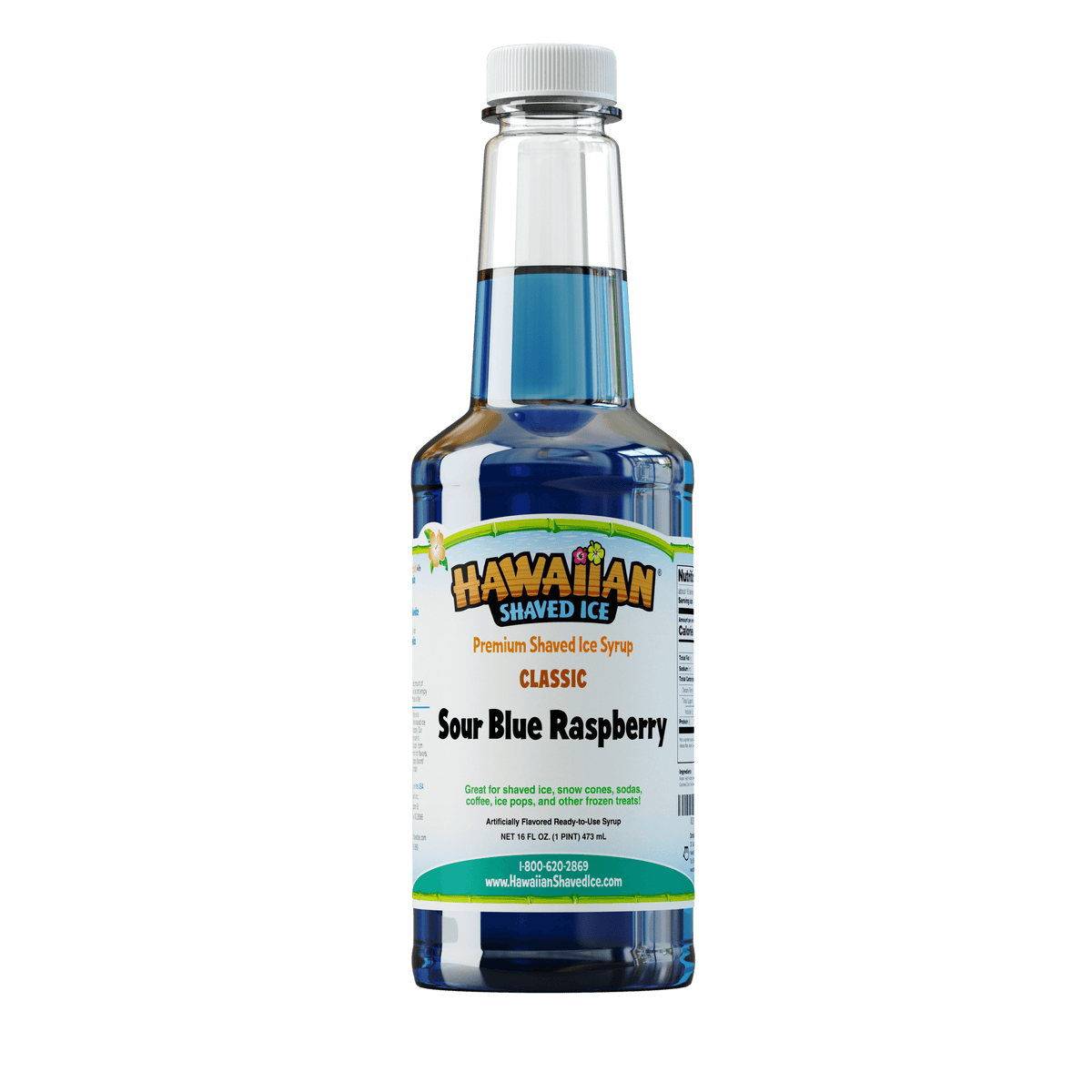 A pint of sour blue raspberry snow cone syrup is perfect for making delicious snow cones at home for family and friends. Order a bottle and enjoy a refreshing sour treat any time you want - sour blue raspberry syrup on its own or as part of an assorted syrup flavor pack.